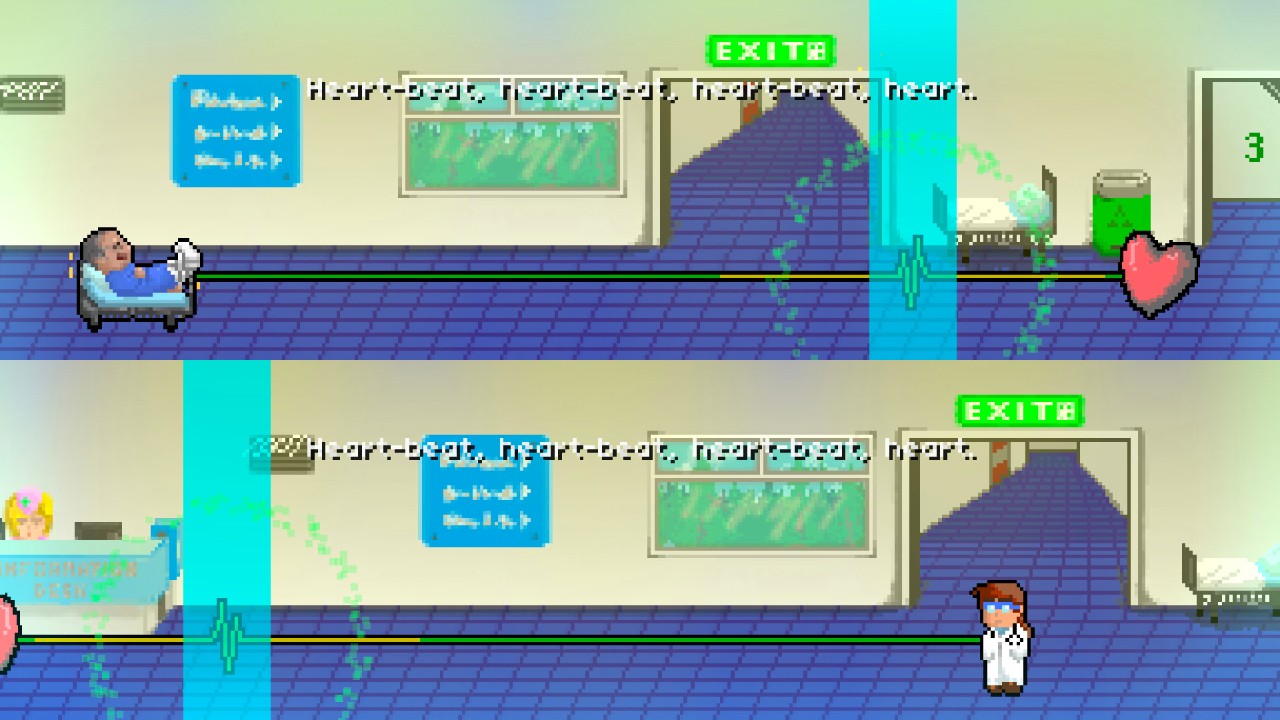 一二三四五六七,节奏医生擅救急。受《节奏天国》启发,机制独特而简约的单键节奏游戏《节奏医生》期待各位白衣圣手的精彩表现。在《节奏医生》的世界中,随着心跳的节拍为病人心脏除颤能够产生神奇的医疗效果。作为医生,只需抓住完美时机在音乐第七拍处按下空格键。请诸位新手医生一定要当心,你可能会面临的病人各有各的症状,对应着各种不同的音乐主题:交错拍子,赫米奥拉(hemiola)拍子,不规则拍子等等。
