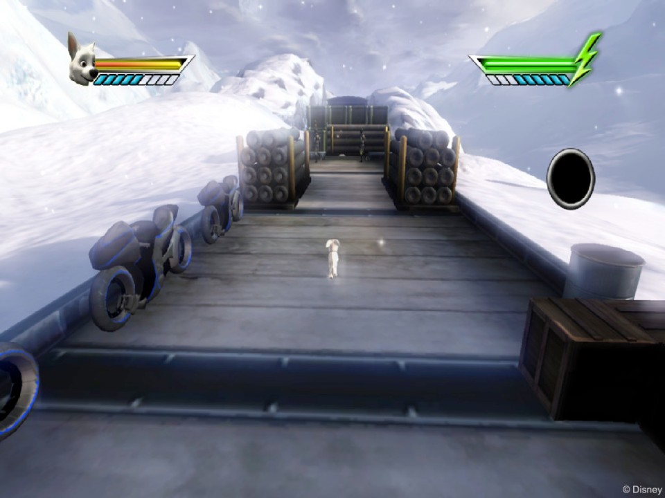 《闪电狗》是一款动作冒险游戏,该作由迪士尼同名动画改编而来。玩家在游戏中可以扮演电影中的主角明星Bolt和它的主人,在世界的5大国家中与对手展开较量。明星Bolt可以使用原作中的招式进行战斗,而作为普通人类的Penny,则擅长破解电脑和潜入行动。虽然本作是根据电影改编的,但是游戏剧情和电影可算是风马牛而不相及的。游戏中虽然运用了电影中的人物,但剧情是描述Penny为了救出被绿眼人绑架的父亲,而和Bolt踏上了旅途。