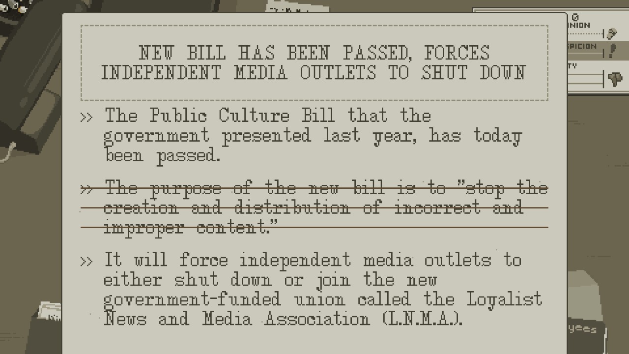 《西港独立社》将让你更加了解整个媒体以及编辑如何对社会产生广泛的后果。虽然游戏很短,但游戏时间是合理的,因为你可以重玩并探索不同的可能结果。