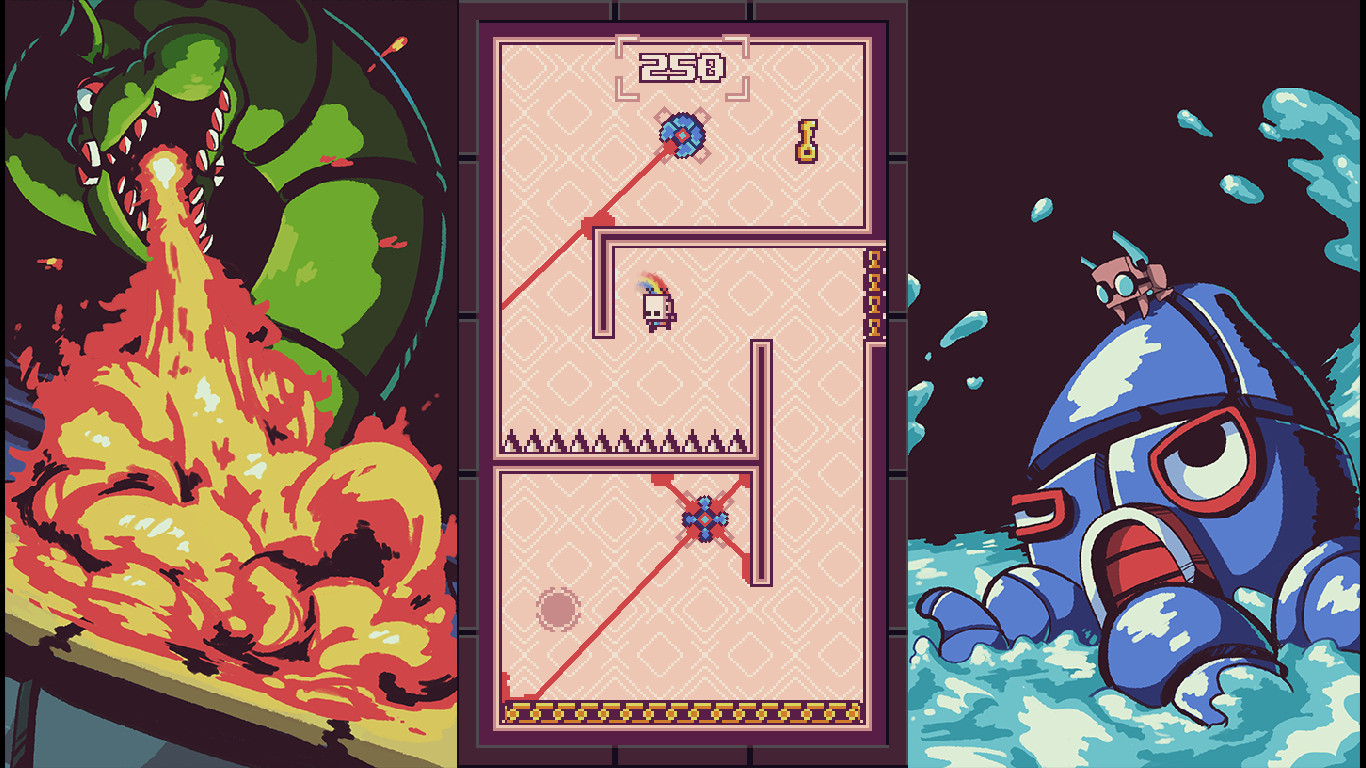 《闪电破坏者 Blitz Breaker》是游戏开发商Blekdar的一款像素风格闯关类动作游戏。玩家要控制主角,利用他的特殊冲刺能力来获得关卡中的钥匙,从而顺利过关。但是游戏场景却是充满着各种即死陷阱,一不小心就很容易会粉身碎骨。