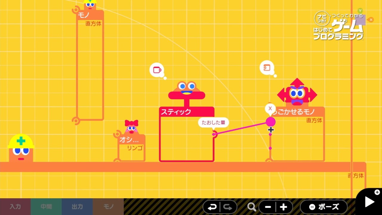 在这款和《超级马里奥制造》、《Labo》等作品有着一些相似理念的游戏中,玩家可以将不同的游戏元素「小节点」连接起来,从而体验编程设计游戏的乐趣。在整个过程中也会有各种导航提示,而且通过「小测验」挑战,玩家也能更好地记忆、掌握学到的内容。此外在「自由设计程序」模式中,你还可以活用学习到的知识,发挥创意自由制作游戏。成品不单能供玩家自己游玩,还可通过网络或本地通讯分享,让别的玩家也能体验你的作品。