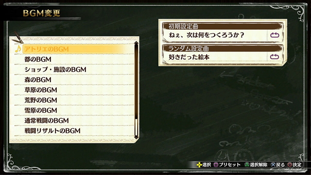 本次发布的历代背景音乐DLC共包含140首乐曲,收录了“玛莉的炼金工房”“艾莉的炼金工房”“莉莉的炼金工房”等系列初期作品的乐曲,同时也包括初代重制版。玩家可在游戏中切换背景音乐,“工作室”“王都”“草原”“普通战斗”等情景的背景音乐都可以进行个性化设置。