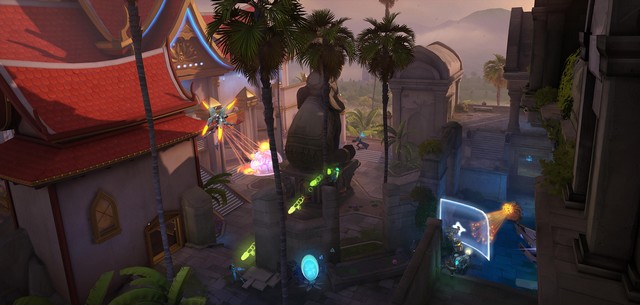 在勇夺锦旗模式中,双方队伍将正面对抗,尝试在夺取敌方旗帜的同时防止对方夺取己方旗帜。玩家可以选择两种模式:“勇夺锦旗”和全新的“竞技夺旗”模式,后者将带来一系列竞技模式的体验,包括定级赛、技能等级、排行榜和竞技点数等。我们还新增了一张夺旗地图:阿育陀耶。