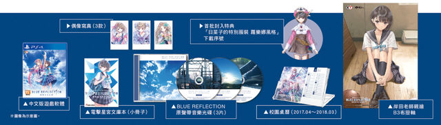 台湾光荣特库摩预定于2017年9月28日(四)发售《BLUE REFLECTION幻舞少女之剑》(PlayStation 4)繁体中文版,并于2017年9月1日公布限量的特典版、典藏版的内容物品。