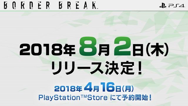 SEGA Interactive宣布,开发中的PS4机器人团队对战游戏《边境保卫战(Border Break)》将于8月2日推出,并预定于4月16日在PlayStation Store开放预购。