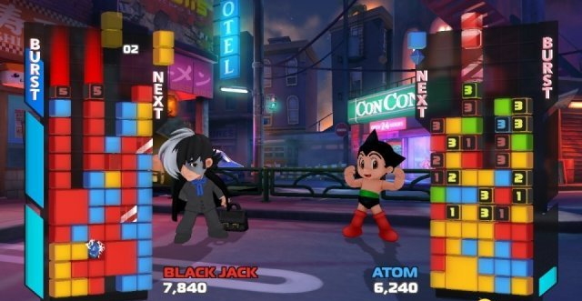 本作是一款1対1进行的经典解谜类消除游戏,玩家一边注意己方的方块消除,还可以给对方施加障碍,对战乐趣十足。游戏中的角色来自《洞窟物语(Cave Story+)》《以撒的结合(The Binding of Isaac)》《公主代码(Code of Princess EX)》等游戏,共计19名,包括铁壁阿童木、怪医黑杰克等经典角色都将参战。游戏将包含标准的街机模式、生存模式、双打合作以及训练模式,同时它也支持本地多人和在线联机功能。