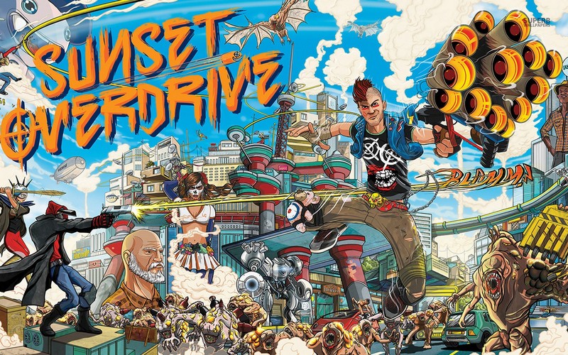《日落过载》由Insomniac Games开发,由微软工作室于2014年在Xbox One平台推出。游戏的舞台设定在2027年的虚构大城市——日落城(Sunset City),玩家将扮演一名FizzCo饮料公司的员工,任务是打击消灭那些因为过量饮用FizzCo出品的碳酸饮料而突变成怪物的人类。