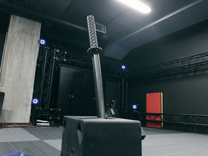 这张照片的拍摄地点是游戏的动作捕捉棚,我们可以看到一个箱子上插着一把日本军刀。这或许是在暗示我们今年E3展的《对马之魂》预告片里就会出现这样的一幕。