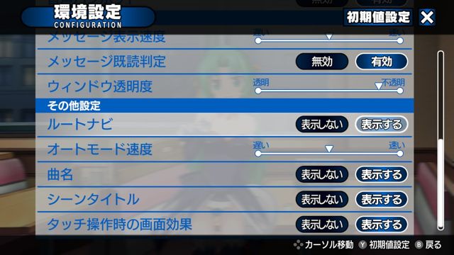剧情共通路线部分,首轮游玩时将固定为「鬼隐篇(鬼隠し编)」,另外还追加了会在剧情出现分歧时显示提示的「路线指引(ルートナビ)」功能。此功能可在环境设定画面设定开启或关闭。