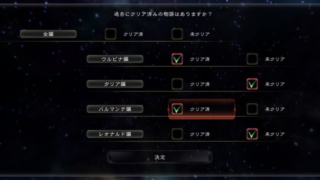 游戏开始前会有问券调查,这个调查目标针对有玩过原始版游戏的玩家,只要勾选已经通关过的主角,就可以在会发生以全破该主角为前提之事件的情况下进行游戏。
