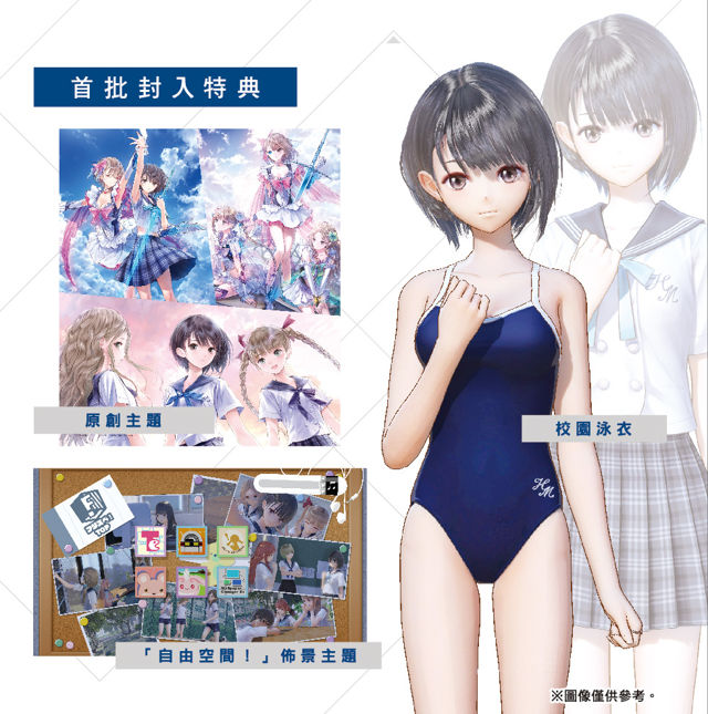 游戏软体内有首批特典:原创主题& 游戏内内容「自由空间!」布景主题& 制服成为校园泳衣的下载序号,是无论购买一般版、特典版或典藏版的首批玩家都能获得的赠品。