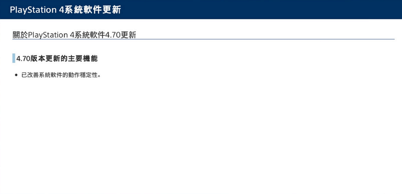 Sony的4.72版本更新说明:4.72版本的主要机能,已改善系统软件的动作稳定性。