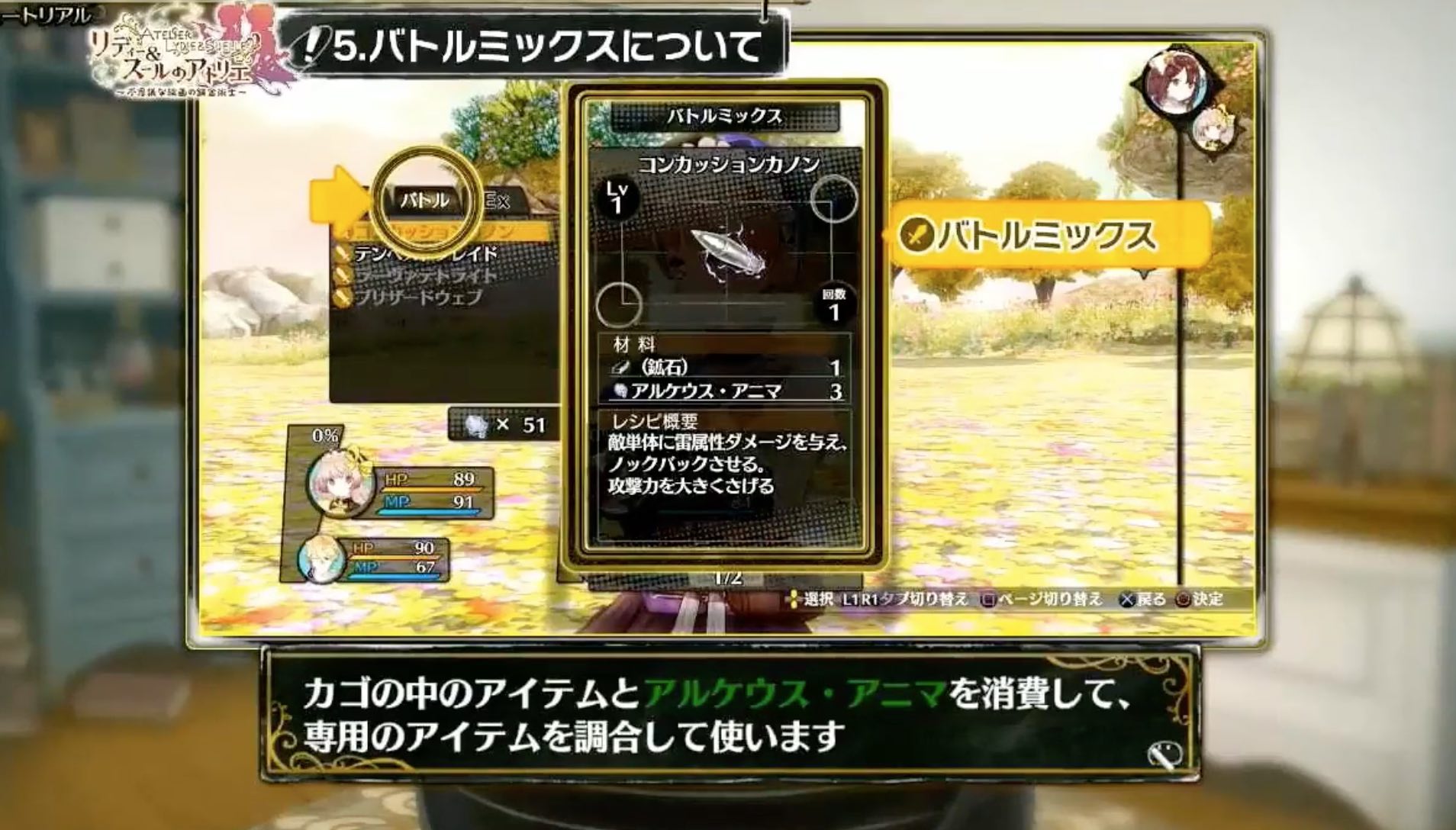 莉蒂和苏尔的“跟随技能”中还有一个“战场调和”技能,消耗一种特殊的媒介“アルケウス アニマ”就能在战场中进行调和,瞬间让怪物多吃下一发道具。