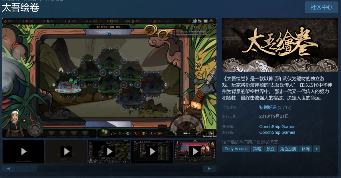 国产游戏《太吾绘卷》销量火爆,这款游戏自9月21日以抢先体验的形式在Steam上发售后,当日销量就突破3万套。