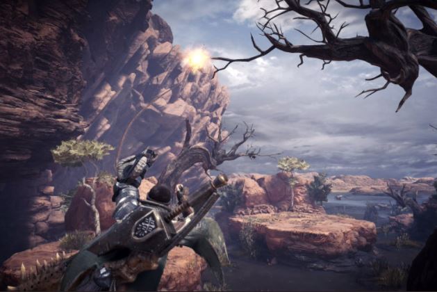 楔虫会在特定的场地闪耀。「弹弓(スリンガー)」是可以作为武器使用的猎人新装备。射中发光的楔虫就可以钩住它来移动。