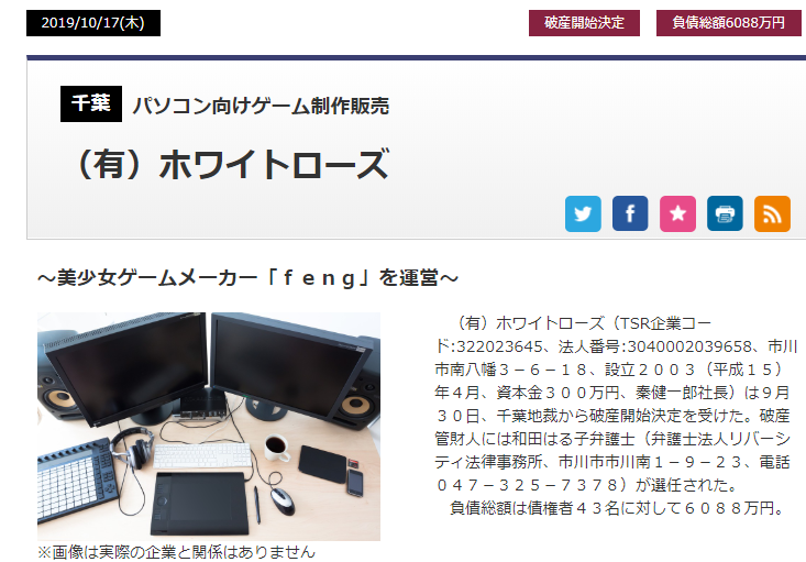 工作室背后的出资运营会社《WhiteRose》成立于2003年4月,由于经营业绩不断滑落,已经于今年5月停止了运营。