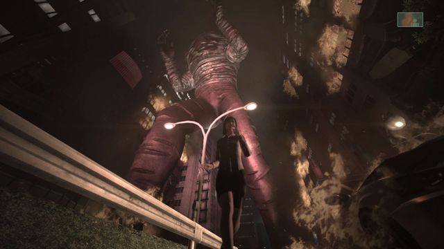 由于玩家没有超人的力量,因此基本上只能“逃跑”。必须躲避别被巨影踩扁或是掉入地面的裂痕中。