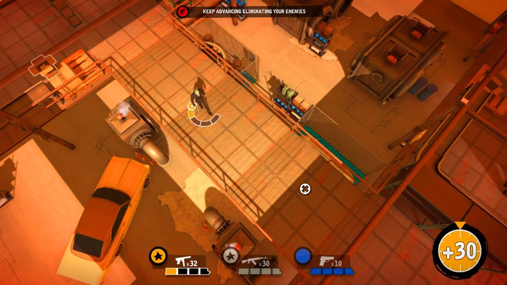 《落水狗:血战日》具备精巧的机制。但在这个容易被遗忘的双摇杆射击游戏,它很快老去。