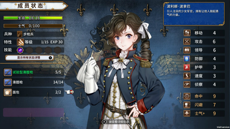 《圣女战旗》是一款以法国大革命为背景的策略战棋游戏。具有鲜明时代标记的线列步兵、炮兵和骠骑兵等兵种,再现了法国大革命时期的战争场面。诸多大革命期间的历史人物也将悉数登场。游戏中,玩家将扮演拿破仑・波拿巴的妹妹——波利娜・波拿巴,在与各方势力周旋之间,培养、指挥部队与众多实力出众的对手较量,在战场上书写自己的传奇故事。