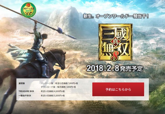 KOEI TECMO Games宣布,开发中的PS4战术动作游戏《真‧三国无双8》确认将于2018年2月8日上市。官方网站同时公布了数名武将的日常服造型,供玩家参考。
