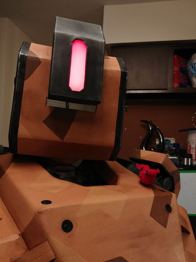 Jiovanie Velazquez 表示,他在头盔上还加装了LED 灯,同时也作出「堡垒」所使用的机枪小型版,不过由于学校方面禁止携带武器的关系,因此有些照片是没有装备机枪的。不过身为「堡垒」,肩上的小鸟是不可或缺的。