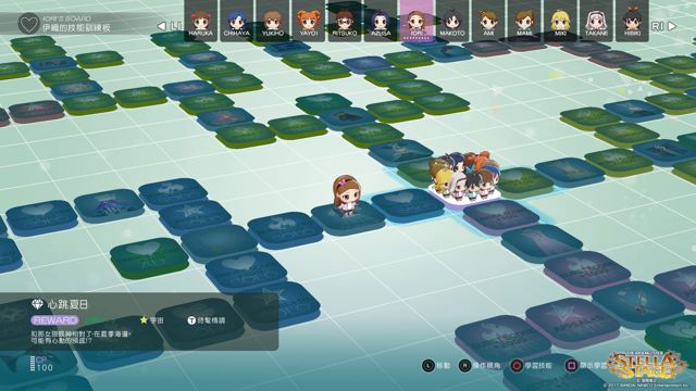 「技能训练」是本作首创的全新系统,更可以说是这次游戏的核心!「技能训练」以类似大富翁的棋盘式方块构成,玩家可以透过消耗「CP(训练点数)」,来解锁角色邻近方块的能力,让偶像所蕴藏的才能及能力开花结果,而「CP」可以透过每次成功的举办演唱会来获得。