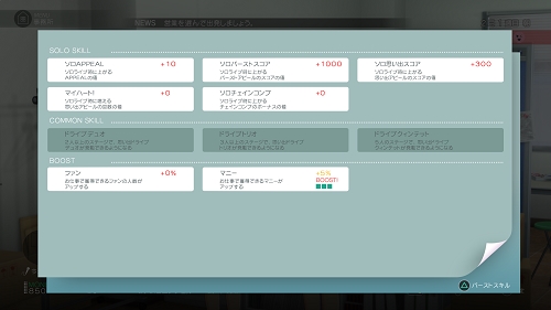 接下了业务及课程,就能从下一周起发动让演唱会变得有利的「爆发(ブースト)」状态!「爆发」状态的效果,将根据工作及课程内容有所变化。等级越高就能使爆发状态的持续时间变长。