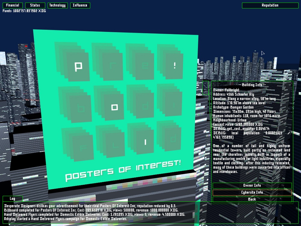 《广告大亨》是一款模拟经营类游戏。游戏中你讲作为一个广告公司的老总,你想要在一个巨大的城市中贴满你的广告,并占据网络上的各种空间。观察城市的经济发展与你的决定的影响,你最终能够成为广告业大亨么?