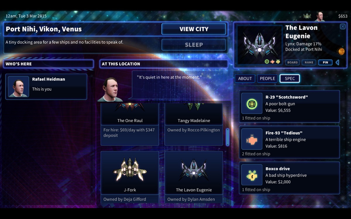 《太阳系交易者Sol Trader》是由Chris Parsons制作发行的一款太空策略类(SLG)+角色扮演类(RPG)游戏,游戏开始时没有给你的船:你必须借一笔贷款,租一艘船,或从一个富有的亲戚借一个,在行星之间飞行,与你在城市和太空中遇到的各种角色之间的互动,通过聊天的朋友和亲戚的其他人物的研究信息,定制你的船有更好的枪,引擎,超空间引擎和客舱。