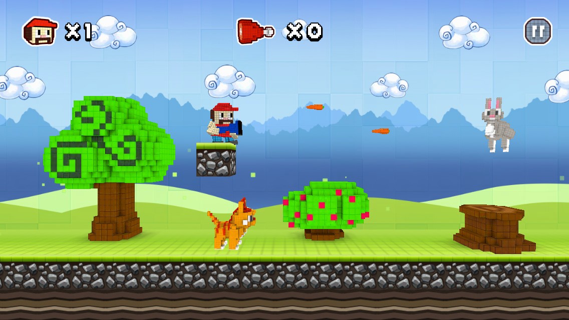 《像素猎人》如超级马里奥系列一样,也是一款横版闯关游戏,游戏是8位像素风格。主角的武器被森林里的小动物们偷走了,而他想要去夺回来。游戏的过程很逗,小兔子居然会发射胡萝卜来打你,而主角被打中,红色的小帽子会掉下来露出秃顶的脑袋,如果再被打到,连假发都会掉下来。游戏比较简单,就单纯捧着把小枪一路跳跃突突突剿灭调皮的各种小动物就行。